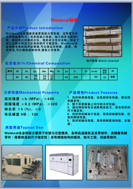 模具專用鋁合金的牌號(hào):HOKOTOL、GIANTAL、WELDURAL、7075T651、7475、7050、2024、6061等。
