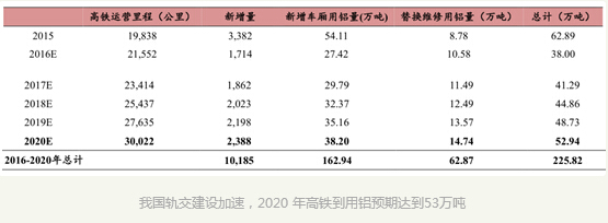 近期中國有色金屬工業(yè)協(xié)會發(fā)布《貫徹落實國務(wù)院辦公廳42號文件的具體工作方案》報告,提出將重點擴(kuò)大鋁的應(yīng)用,將用三年時間擴(kuò)大600萬噸鋁的應(yīng)用,其中交通用鋁是主要方向。